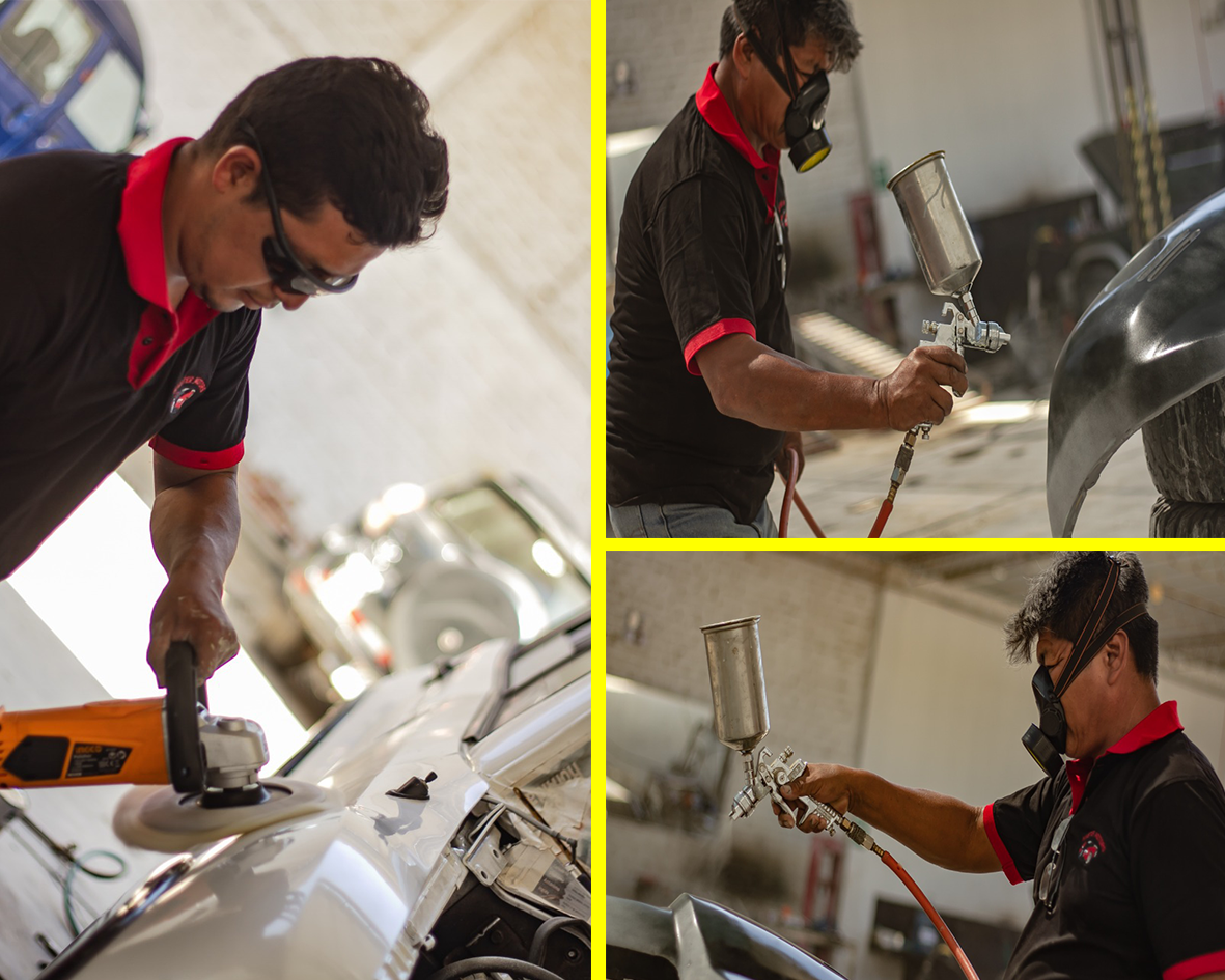 Generalmente el planchado y pintura, consiste en restaurar y reparar las piezas afectadas mientras se cuidan las partes originales no afectadas por el impacto que han sido golpeadas y la pintura se hace con pintura anticorrosiva, que cumple la función de prevenir el óxido, mientras mejora la estética del carro. Podemos ayudarte a mejorar golpes, imperfectos, rayones retoques y pintura general del carro.
